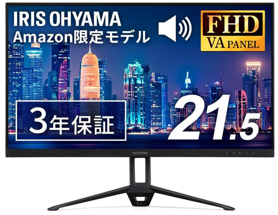 アイリスオーヤマ モニター 21インチ スピーカー内蔵 VAパネル HDMI VGA 角度調整可能 FHD 1920x1080 60Hz 8ms ブルーライト軽減 フレームレス