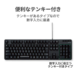 エレコム有線キーボード メンブレン式 フルサイズ(ブラック)TK-FCM104XBK