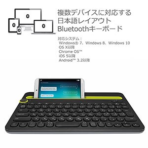 ロジクールマルチデバイス対応Bluetoothキーボード(ブラック)Logicool Bluetooth Multi-Device Keyboard k480K480BK