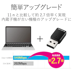 エレコム11ac対応 867Mbps 無線LANアダプターWDC-867DU3S