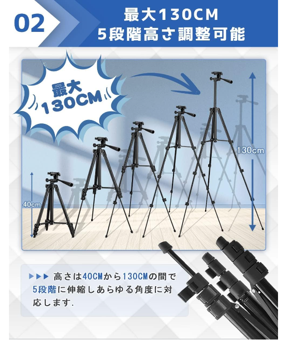 スマホ 三脚 iphone 三脚 Bluetoothリモコン付き三脚 3WAY雲台 4段階伸縮 最大長さ130cm 360°回転可能 スマートフォン 三脚 軽量 ミニ三脚 収納袋付き 持ち運び便利 iPhone/Android/カメラなど対応 自撮りや集合写真、生ライブ配信などに適用 日本語取扱書付き