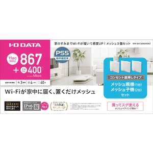 I/Oデータ360コネクト搭載 867Mbps対応 Wi-Fi メッシュルーター(コンセント直差しタイプ)3個セット(PS5動作確認済み)WN-DX1300GNEX2