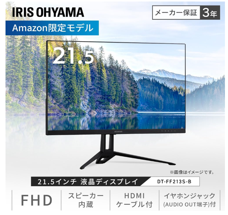 アイリスオーヤマ モニター 21インチ スピーカー内蔵 VAパネル HDMI VGA 角度調整可能 FHD 1920x1080 60Hz 8ms ブルーライト軽減 フレームレス