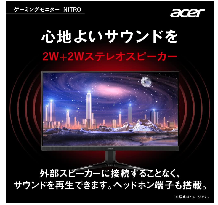 Acer Nitro ゲーミングモニター 21.5インチ VA 非光沢 フルHD 100Hz 1ms(VRB) HDMI ミニD-Sub15 VESAマウント対応 スピーカー内蔵 ヘッドホン端子 AMD FreeSync QG221QHbmiix PC/PS4/Switch向き LF0186