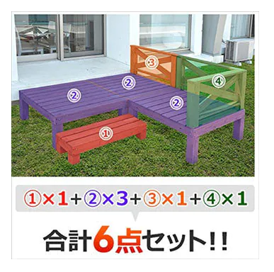 デッキ天板を支える桟が2本あるので安心。デッキの幕板は取り付けた状態でお届けするので組立簡単。デッキ天板表面にビスが出ない安心設計。フェンスとデッキのつなぎ目はL字金具で固定することでより強度を増した設計。自宅の庭先が高原のペンションのように。庭先の段差解消にも。組み合わせで色々なパターンに設置可能。