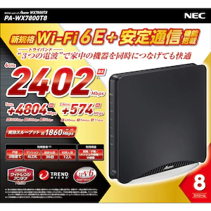NECWi-Fi 6E(11ax)対応トライバンド(6GHz+5GHz+2.4GHz)無線LANルーター Aterm WX7800T8【最新 Wi-Fi 6E(6GHz) 対応モデル】PA-WX7800T8