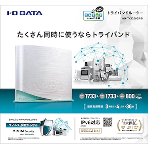 I/Oデータ11ac対応 無線LANルータ 親機 トライバンドWi-Fiルーター(1733+1733+800Mbps)WN-TX4266GR